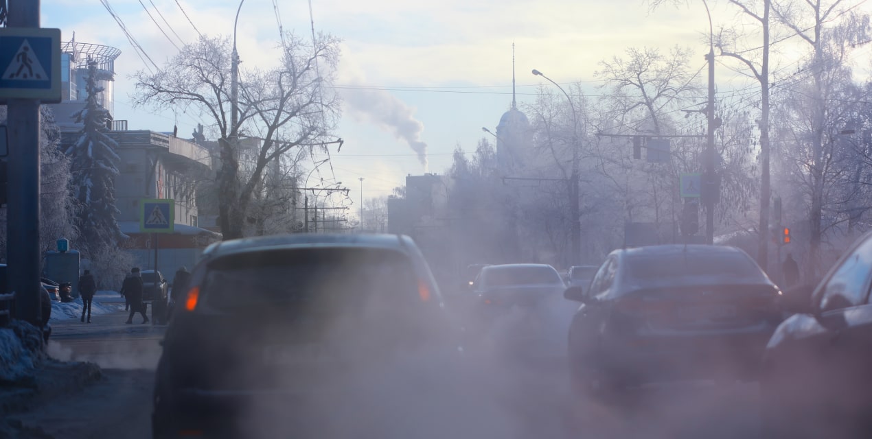 Carbon monoxide (CO) is produced from incomplete combustion of fossil fuels, primarily in vehicles. In urban environments, heavy traffic and congested roadways are major sources of carbon monoxide emissions.