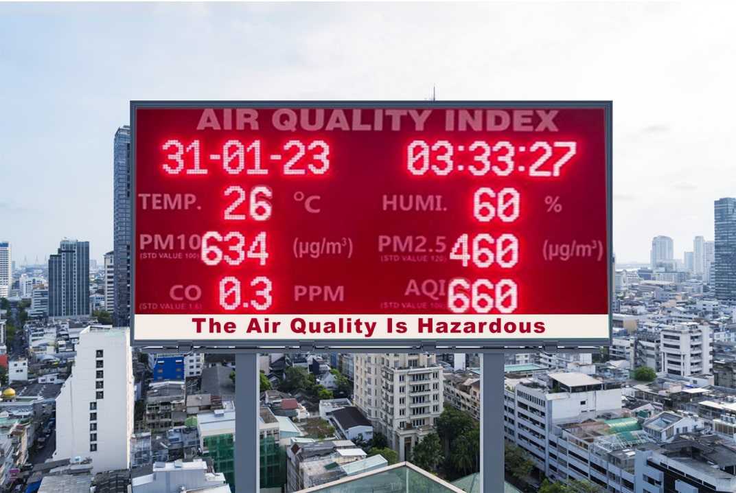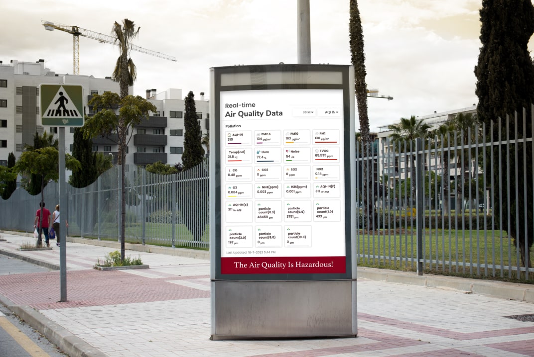 across the city where there are more public gathering, traffic junctions, and hubspots with the LED displays to dispay the real-time air pollution level of the areas.