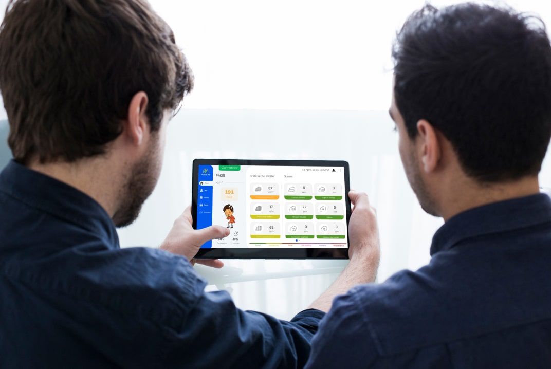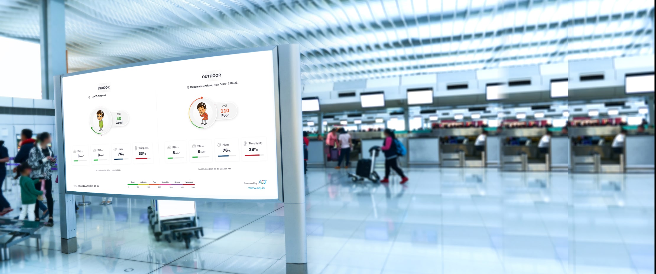 Prana Air with AQI offers data dashboards that display air quality information in an easily understandable format. These dashboards can be accessed through various mediums such as TV screens, LED displays, and mobile/tablet apps,and website providing real-time updates on air quality levels and trends.