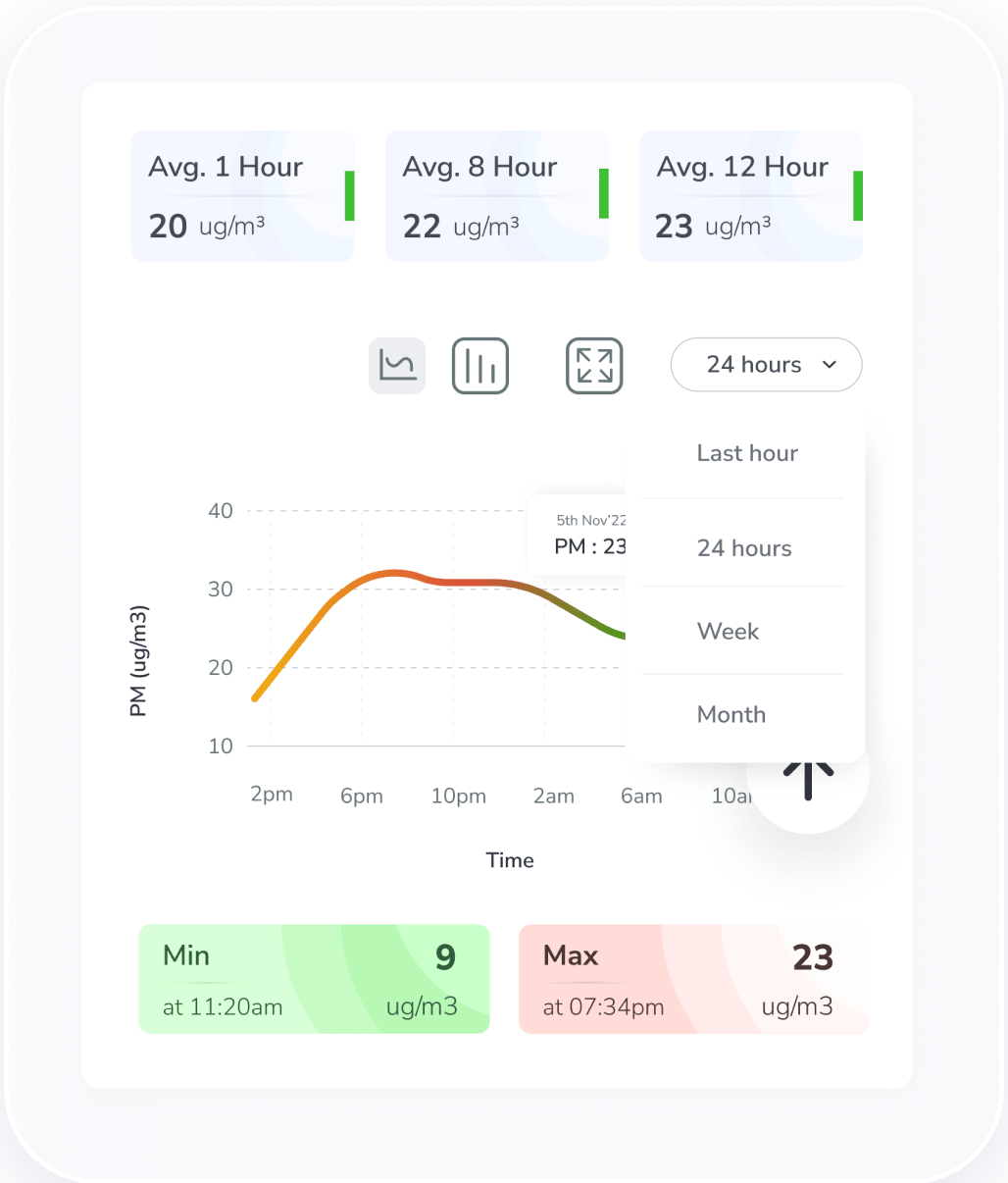 The dashboard is a free and easy-to-use tool that allows you to connect your PM2.5 monitor and access your data from anywhere in the world.