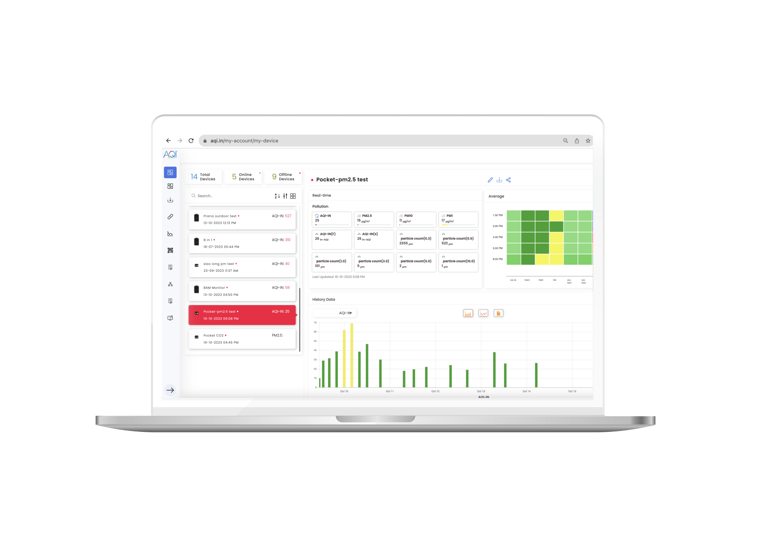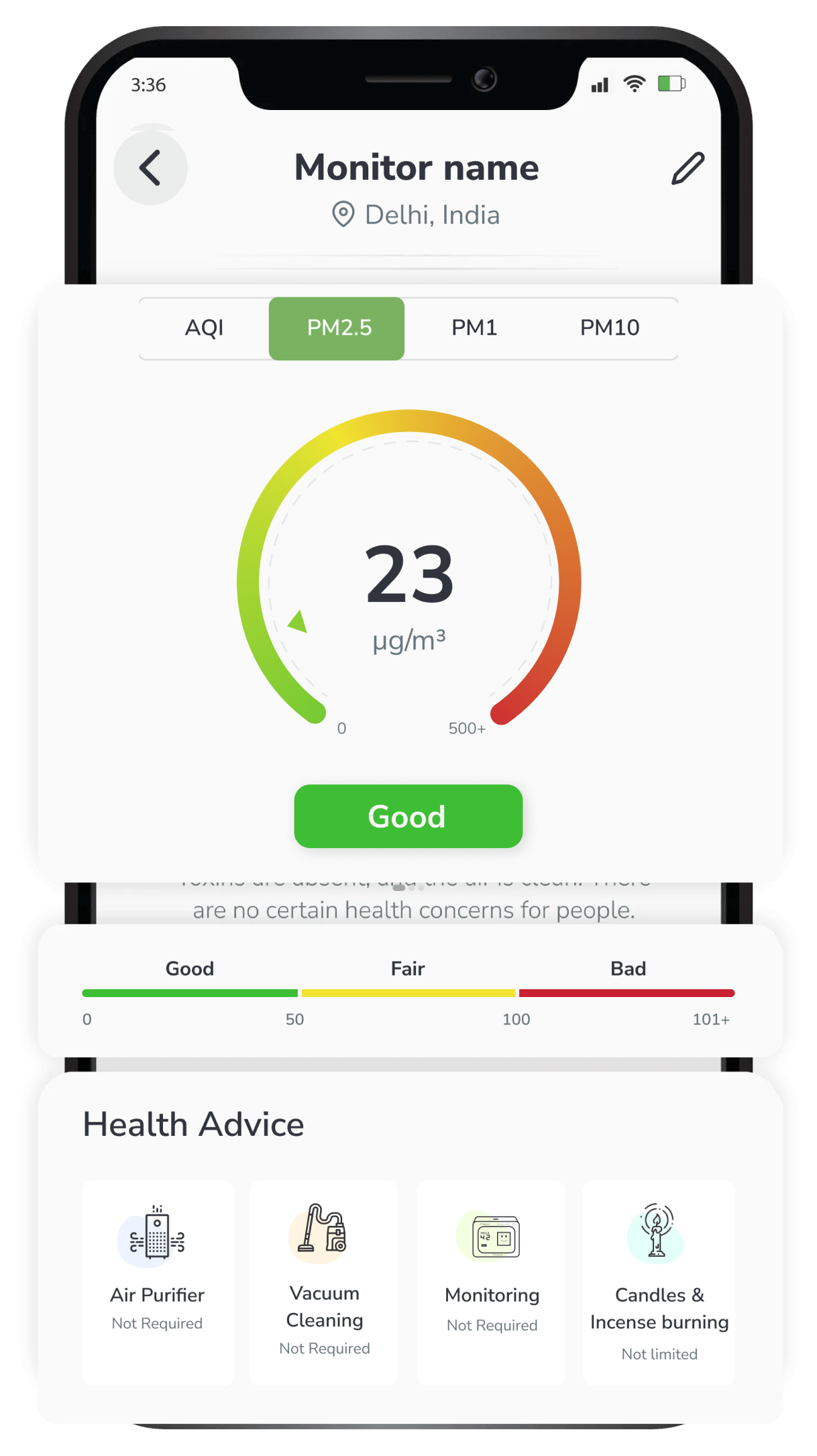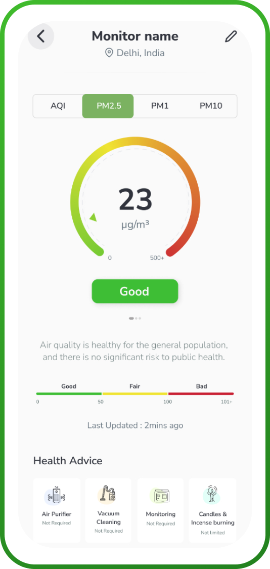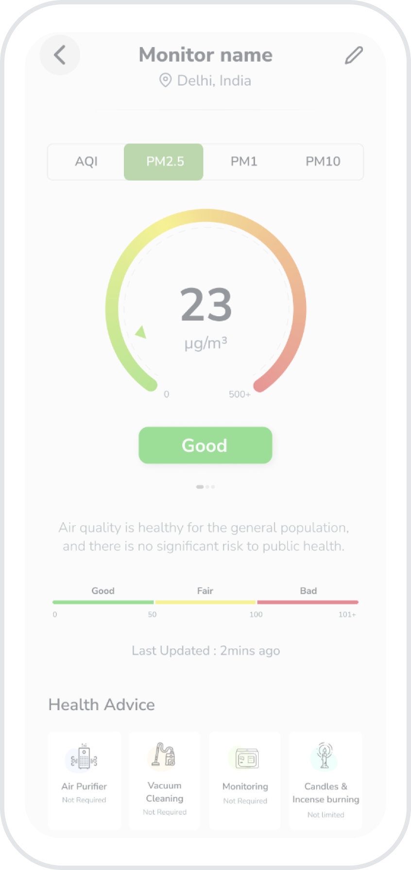Access the real-time particulate matter PM1, PM2.5, PM10 data of your PM2.5 monitor in AQI mobile app.