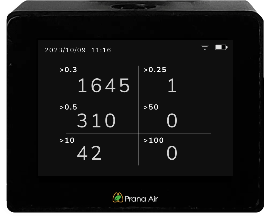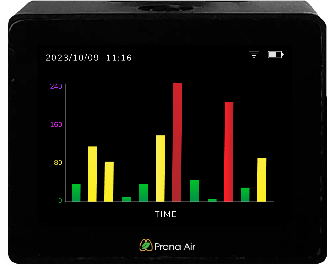 The Prana Air Pocket PM2.5 monitor uses a high-precision laser sensor to detect and measure airborne particles. The sensor counts the number of particles in different size ranges (PM1, PM2.5, and PM10) and calculates the concentration in micrograms per cubic meter (µg/m³). This data is then displayed on the LCD screen and can be transmitted via WiFi to the AQI app for remote monitoring and analysis.
