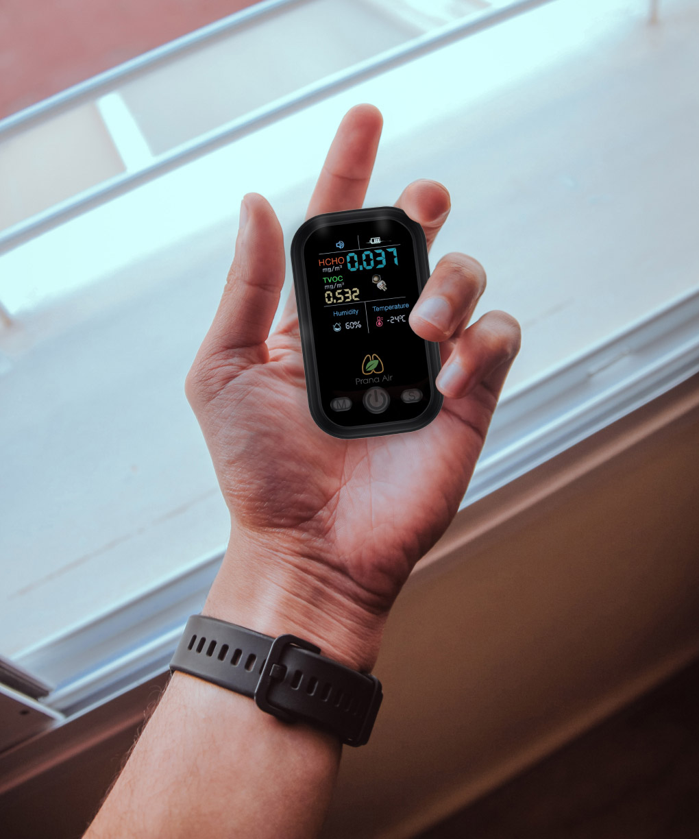 Prana Air Nano TVOC & HCHO monitor is a handy air quality monitoring device that helps you monitor Total Volatile Organic Compounds & Formaldehyde levels in real-time along temperature and humidity.