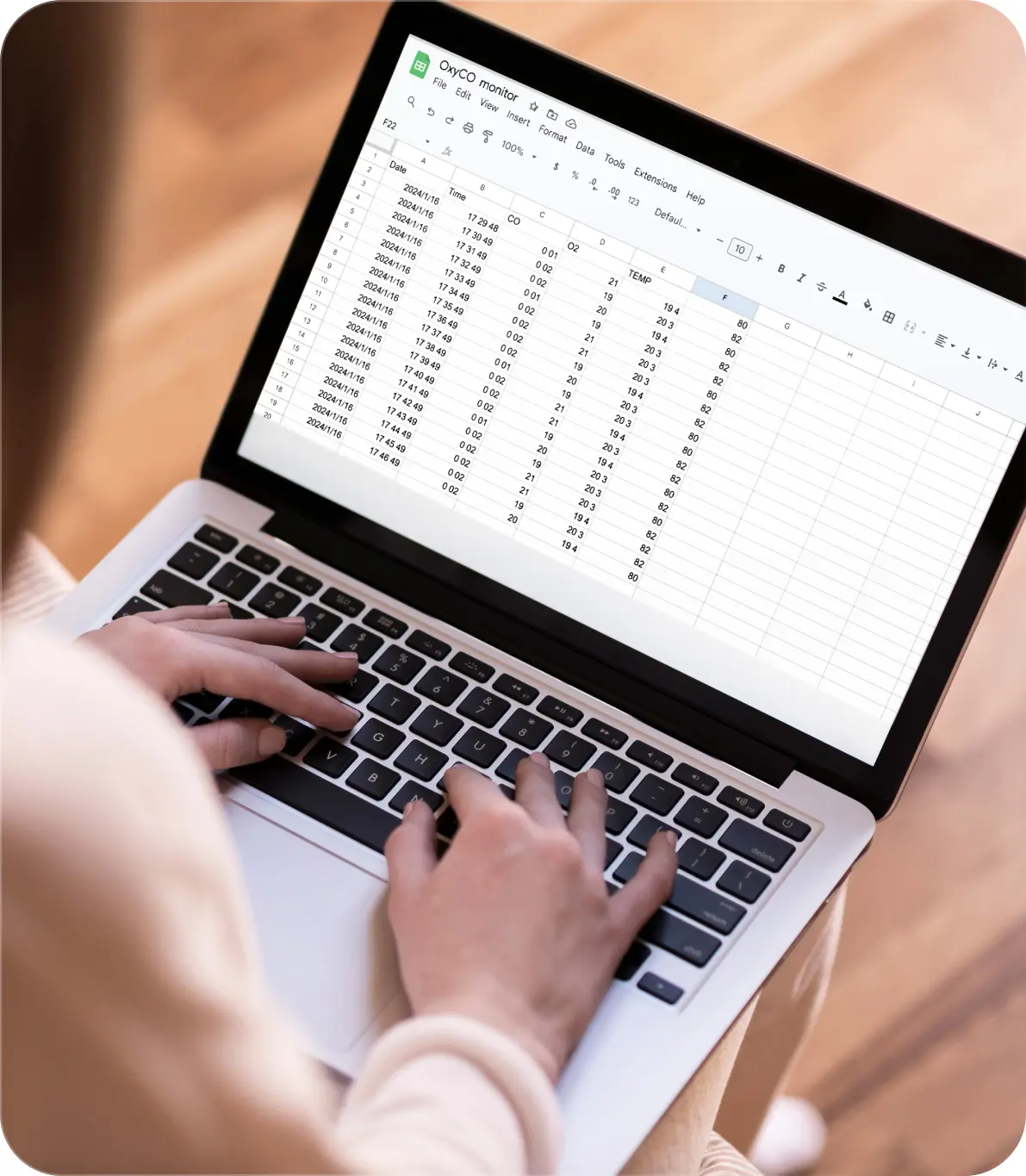 Easily download your OxyCo monitor data in multiple formats, including .csv and .xls, for seamless access.