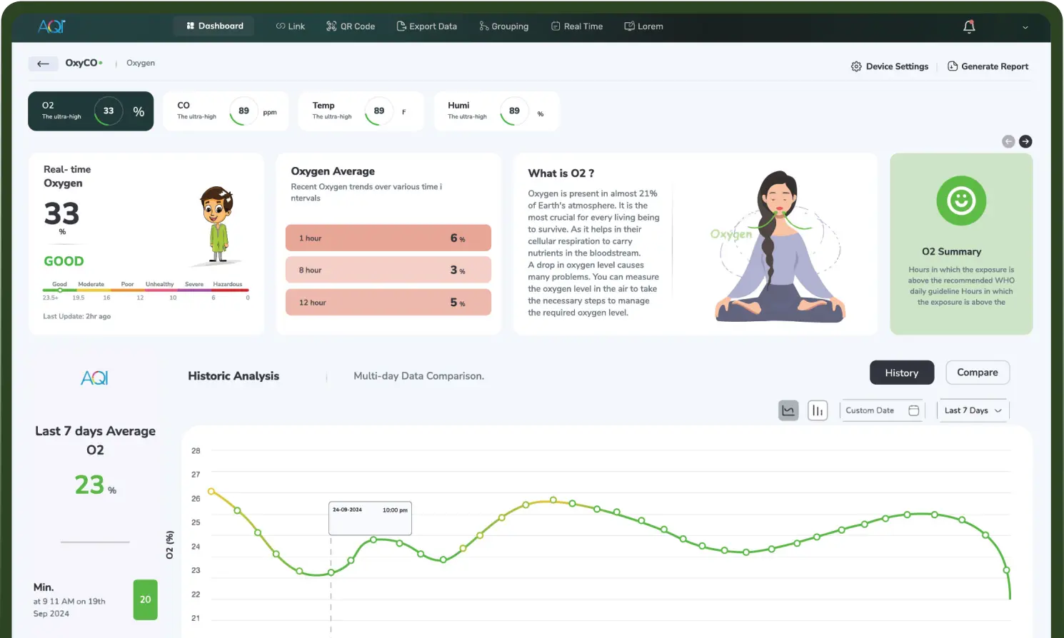 Connect your OxyCo monitor with AQI mobile app to access air quality data on your fingertips.