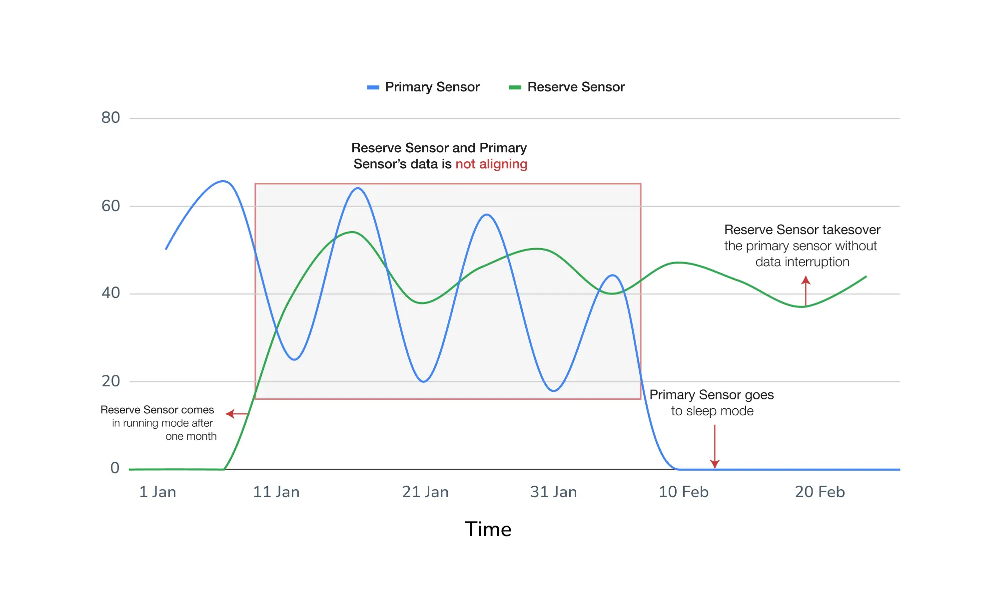 In dual-sensor technology, the reserve sensor works for one month to check the primary sensors working capabilities. If both sensors data is not aligned, the reserve sensor takes over and the primary sensor goes to sleep.