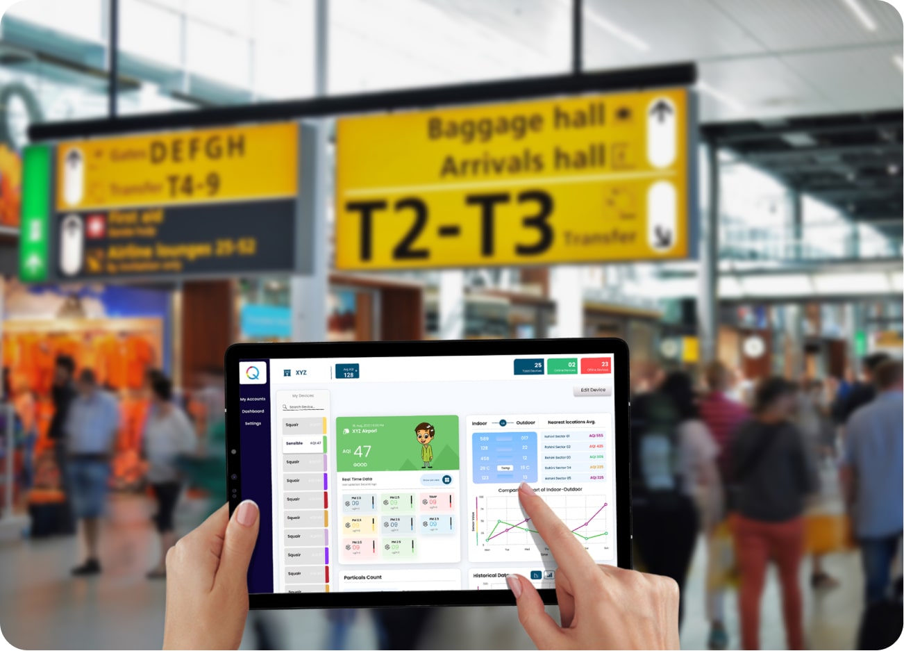 The nature of air pollutants inside an airport is so vast that if ignored, they can have extreme effects on passengers, staff, and people living near airports. Due to this, air monitoring becomes essential in and around airports. A real-time air quality monitoring system will enable airport authorities to estimate pollution levels caused by various sources to comply with regulatory standards.